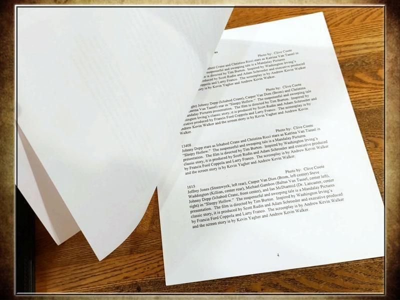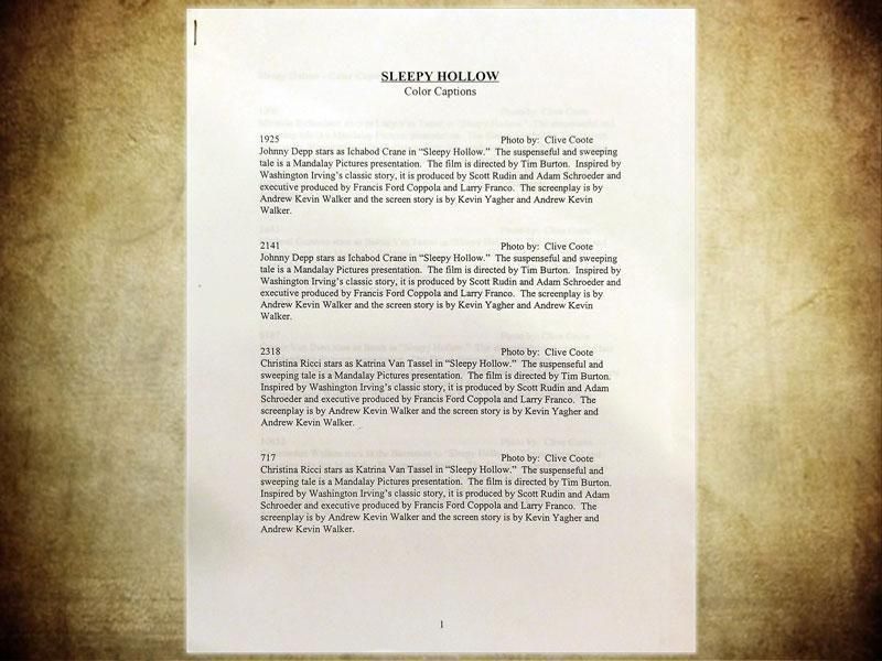 1999年に公開された映画 スリーピー・ホロウのプレスフォト&カラースライドセットです。